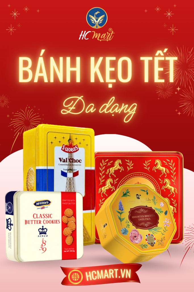 Hiểu rõ xu hướng này, HC Mart đã chuẩn bị danh mục bánh kẹo Tết 2026 phong phú, cập nhật sớm để khách hàng có nhiều lựa chọn đẹp và mức giá tốt trước cao điểm Tết.