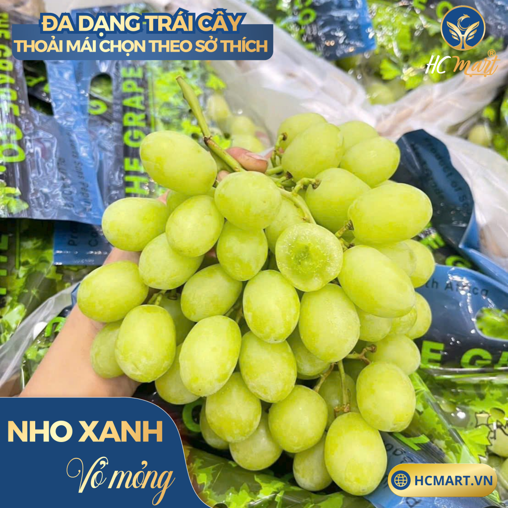 🍇 Nho xanh – giòn, ngọt lịm, không hạt, dễ ăn cho cả gia đình. Phù hợp với cả trẻ nhỏ và người lớn.
