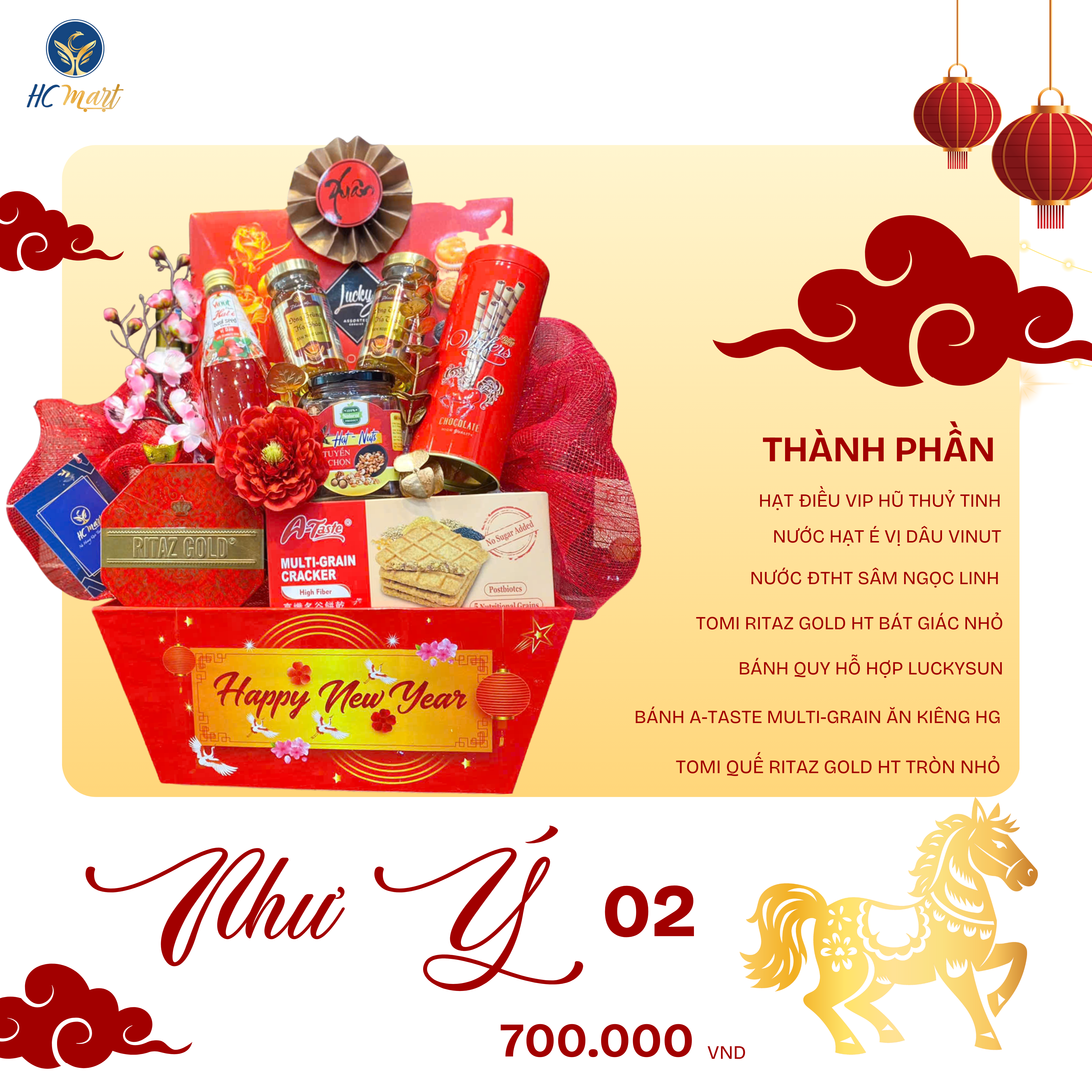 Hiểu rõ nhu cầu đó, HC Mart – Nữ Hoàng Quà Tặng Sức Khỏe chính thức ra mắt Bộ kệ quà Tết 2026 với đa dạng mức giá – thiết kế sang trọng – dễ trưng bày – dễ lựa chọn, đáp ứng trọn vẹn mọi nhu cầu biếu tặng mùa xuân mới.