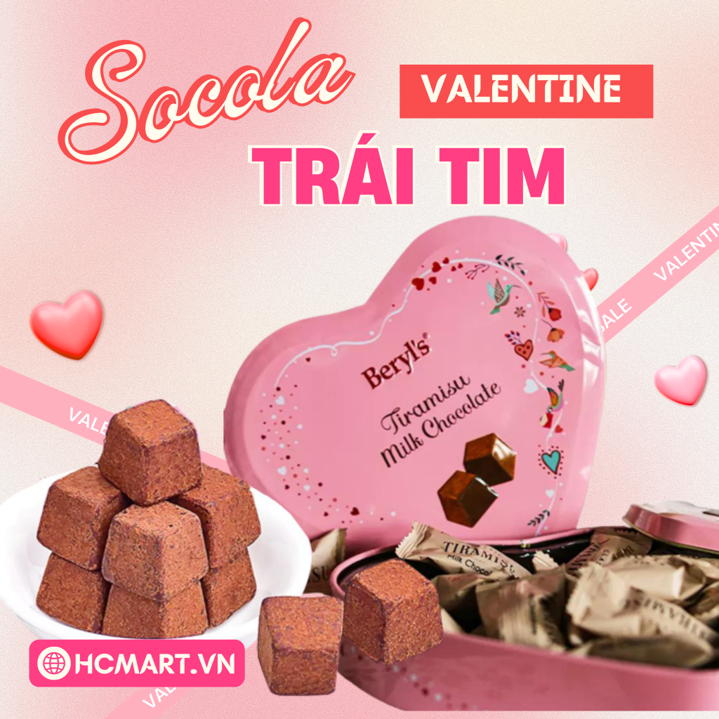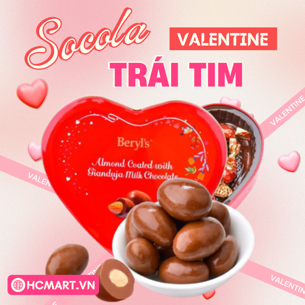 Tại HC Mart, bạn chỉ cần hơn 100.000đ là đã có ngay socola Beryl’s hình trái tim – món quà ngọt ngào chuẩn vibe Valentine, phù hợp tặng người yêu, crush, vợ/chồng hay bạn bè thân thiết.